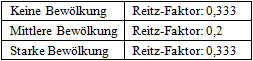Der Diffusstrahlungsfaktor (Reitz) gibt den Prozentsatz der Sonnenstrahlung an, der durch Streuungseffekte in der Atmosphäre “verloren” geht und die Erdoberfläche als diffuse Himmelsstrahlung erreicht.